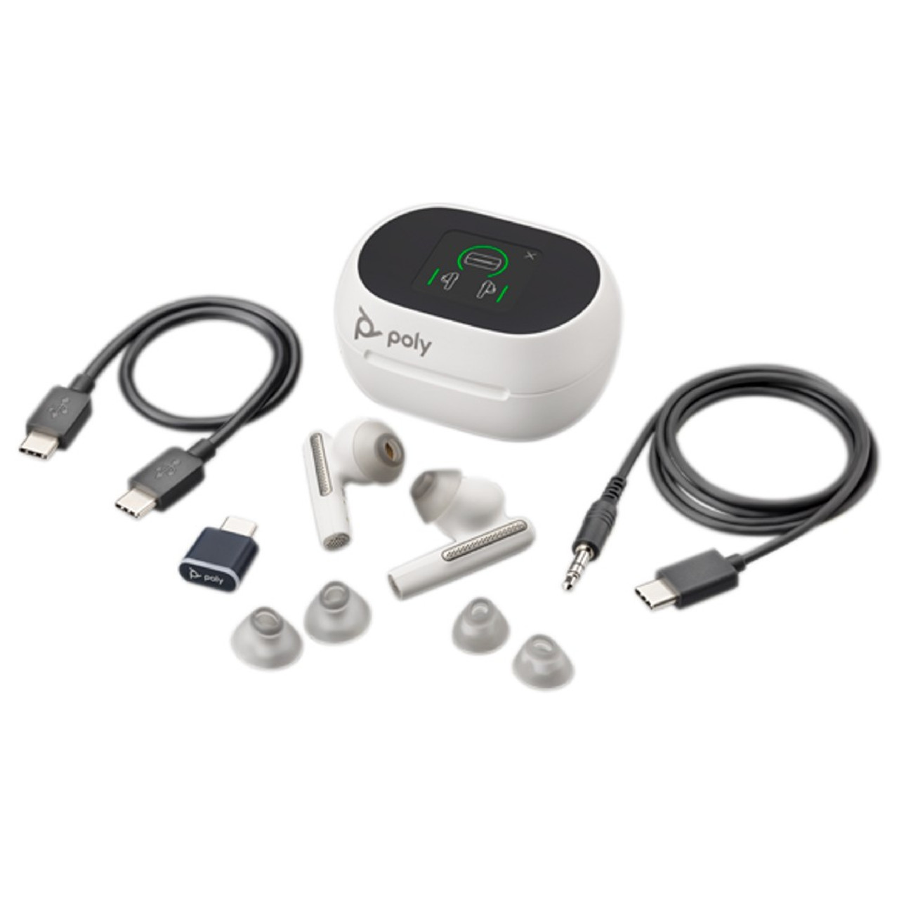 Poly Voyager Free 60+ UC là dòng tai nghe true wireless cao cấp, được thiết kế đặc biệt cho người dùng chuyên nghiệp cần sự kết nối linh hoạt, chất lượng âm thanh vượt trội và khả năng làm việc di động. Sản phẩm này không chỉ gây ấn tượng bởi thiết kế nhỏ gọn, thời trang mà còn sở hữu loạt tính năng công nghệ hiện đại, tối ưu trải nghiệm âm thanh và giao tiếp. Dưới đây là các tính năng nổi bật nhất giúp Poly Voyager Free 60 UC trở thành lựa chọn hàng đầu trong phân khúc tai nghe không dây cao cấp.