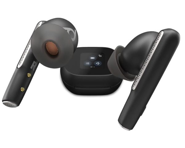 Một trong những điểm nổi bật nhất của Poly Voyager Free 60+ UC chính là hộp sạc thông minh được trang bị màn hình cảm ứng LCD tích hợp. Đây không chỉ là nơi lưu trữ và sạc tai nghe, mà còn đóng vai trò như trung tâm điều khiển giúp người dùng điều chỉnh âm lượng, chuyển đổi giữa các thiết bị kết nối, tắt/bật chống ồn chủ động (ANC), hay điều khiển nhạc và cuộc gọi chỉ bằng thao tác chạm trực tiếp trên hộp. Thiết kế này đặc biệt phù hợp với môi trường làm việc di động, nơi người dùng không phải lúc nào cũng tiện sử dụng điện thoại hay máy tính để điều chỉnh các thiết lập âm thanh.
