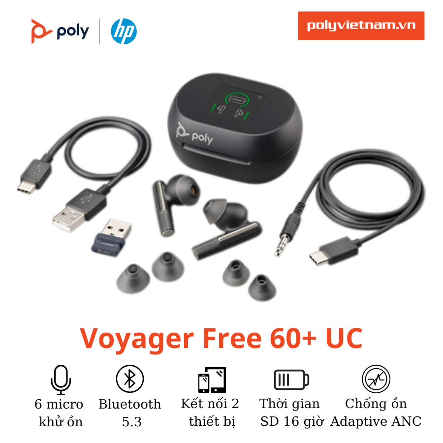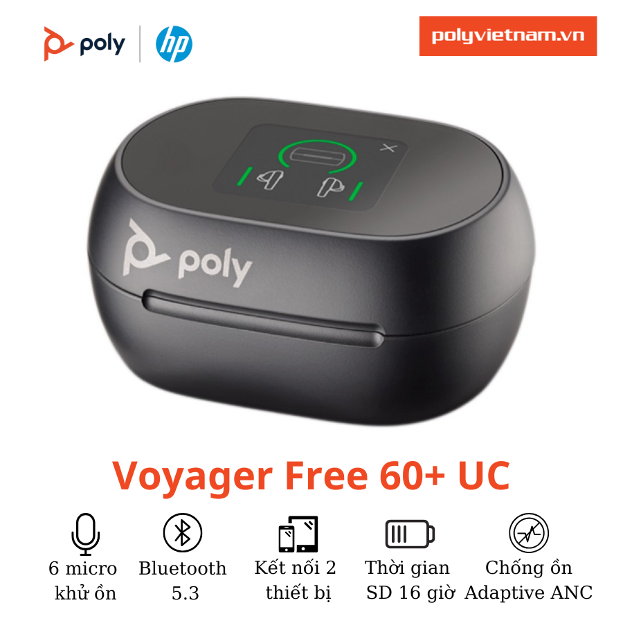 Poly Voyager Free 60+ UC là tai nghe true wireless lý tưởng cho giới chuyên môn, doanh nhân và những người thường xuyên di chuyển. Với công nghệ âm thanh tiên tiến, thiết kế tiện lợi, khả năng chống ồn thông minh cùng tính năng kết nối đa điểm, đây là giải pháp hoàn hảo cho công việc linh hoạt trong kỷ nguyên số. Nếu bạn đang tìm kiếm một chiếc tai nghe vừa phục vụ tốt nhu cầu họp trực tuyến, vừa mang đến trải nghiệm âm nhạc đỉnh cao, Poly Voyager Free 60+ UC là lựa chọn không thể bỏ qua.
